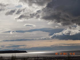 By early evening, the skies cleared, with sun lighting low cloud wisps and the western end of the Inlet.